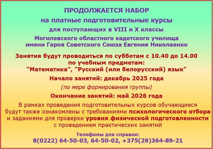 ГУО "Могилевское областное кадетское училище имени Героя Советского Союза Евгения Николаенко" на постоянную работу требуются: