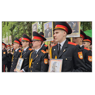 В знак глубокого уважения к подвигу советского народа, кадеты держали в руках фотографии ветеранов Великой Отечественной войны, героев, отстоявших мир на земле. Эти портреты - символ памяти и признательности тем, кто ценой своей жизни приближал долгожданный День Победы.