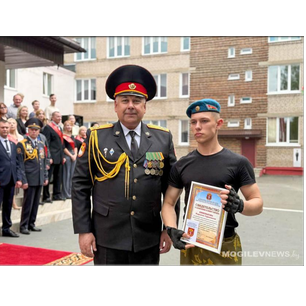 В строю выпускников особо выделялись кадеты, удостоенные чести носить голубые и черные береты - символ высочайшей воинской доблести и отличной физической подготовки. Особую гордость училища представляет медалист Шпаков Иван, который за блестящие успехи в учебе и активное участие в жизни училища заслуженно занесен в Книгу Почета. Иван планирует реализовать себя в сфере высоких технологий и намерен поступать в БГУИР на факультет компьютерной инженерии. Он уверен, что дисциплина и целеустремленность, воспитанные в кадетском училище, помогут ему добиться успеха и в этой области.