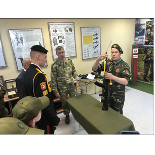 Здесь ребятам показали документальный фильм о деятельности и буднях военнослужащих внутренних войск МВД, произвели обзорную экскурсию по территории части, а также ознакомили с условиями быта и проживания военнослужащих. Особенный интерес у кадет вызвала специально подготовленная для них выставка оружия. Будущие защитники смогли примерить на себя бронежилеты, подержать настоящий щит и даже прицелиться из гранатомёта.