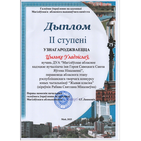 В числе 10 учащихся 9-10 классов учреждений образования Могилевской области, прошедших отборочный этап, в конкурсе принял участие и наш учащийся, старший вице-сержант Владислав Цильке.