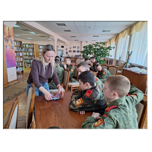 Не менее интересным стало посещение городской библиотеки, где кадеты ознакомились с выставкой национально-патриотической тематики и приняли участие в интеллектуальной викторине, продемонстрировав свои знания истории и культуры Беларуси.