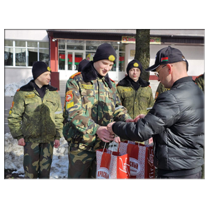 В Могилёвском областном кадетском училище имени Героя Советского Союза Евгения Николаенко 18 января состоялось необычное родительское собрание под названием "Рождественские встречи". Вместо стандартной повестки дня педагогический коллектив и кадеты подготовили программу, которая органично сочетала в себе информационную часть и теплую, праздничную атмосферу. Особую рождественскую нотку мероприятию придал отец Артемий, исполнивший душевные песни и подаривший от имени Могилевской епархии сладкие подарки кадетам. Кроме того, младший брат выпускника училища, Родион Михалев, мечтающий стать кадетом, порадовал всех своим музыкальным подарком.