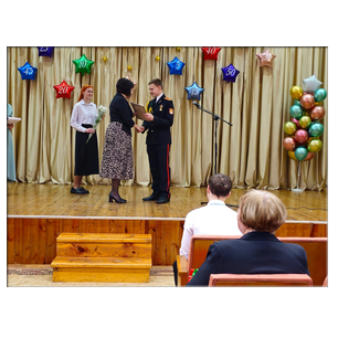 Кадеты вручили поздравительный адрес от директора кадетского училища, полковника Гришанова Юрия Аркадьевича, в котором он поздравил коллектив школы со столь значимой датой и пожелал дальнейших успехов в их профессиональной деятельности.