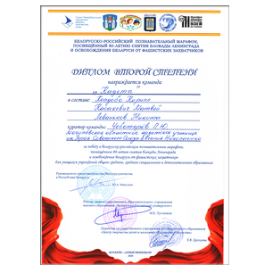22 ноября 2024 года г. Могилёв стал ареной интеллектуального противостояния: здесь определились лучшие команды Белорусско-Российского познавательного марафона, посвященного 80-летию освобождения Ленинграда и Беларуси от фашистской оккупации. Десять сильнейших команд из двух братских стран - Беларуси и России - демонстрировали глубину знаний, остроту ума и неиссякаемый творческий потенциал, соревнуясь за почетное звание победителей. Цель марафона - раскрытие творческого, коммуникативного и лидерского потенциала учащейся молодёжи.