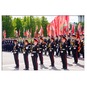 Ответственная миссия была доверена молодежи, и с честью ее выполнили юные защитники Отечества - кадеты Могилевского областного кадетского училища имени Героя Советского Союза Евгения Николаенко. В их уверенной поступи, в их гордой осанке, когда они несли национальный флаг и герб по площади Ленина, чувствовалась искренняя любовь к Родине и глубокое понимание значимости государственных символов, воплощающих независимость, преемственность поколений и нерушимое единство белорусского народа. Это стало ярким свидетельством патриотизма и готовности молодого поколения оберегать и прославлять свою страну.