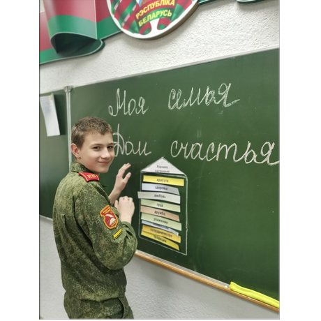 В течение недели в библиотеке действовала тематическая полка "Семейная сага на страницах книг", в фойе транслировались социальные ролики о важности и ценности семьи, была представлена выставка рисунков "Герб моей семьи", а также видео-интервью "У меня счастливая семья". Проведены консультации с родителями на тему "Семейные установки и их влияние на поведение несовершеннолетних", классные часы: "Семья - как много в этом слове…", "Вместе за крепкую и здоровую семью", и воспитательные мероприятия "Семейные традиции. Ценность семьи в современном мире", организованные командирами взводов.